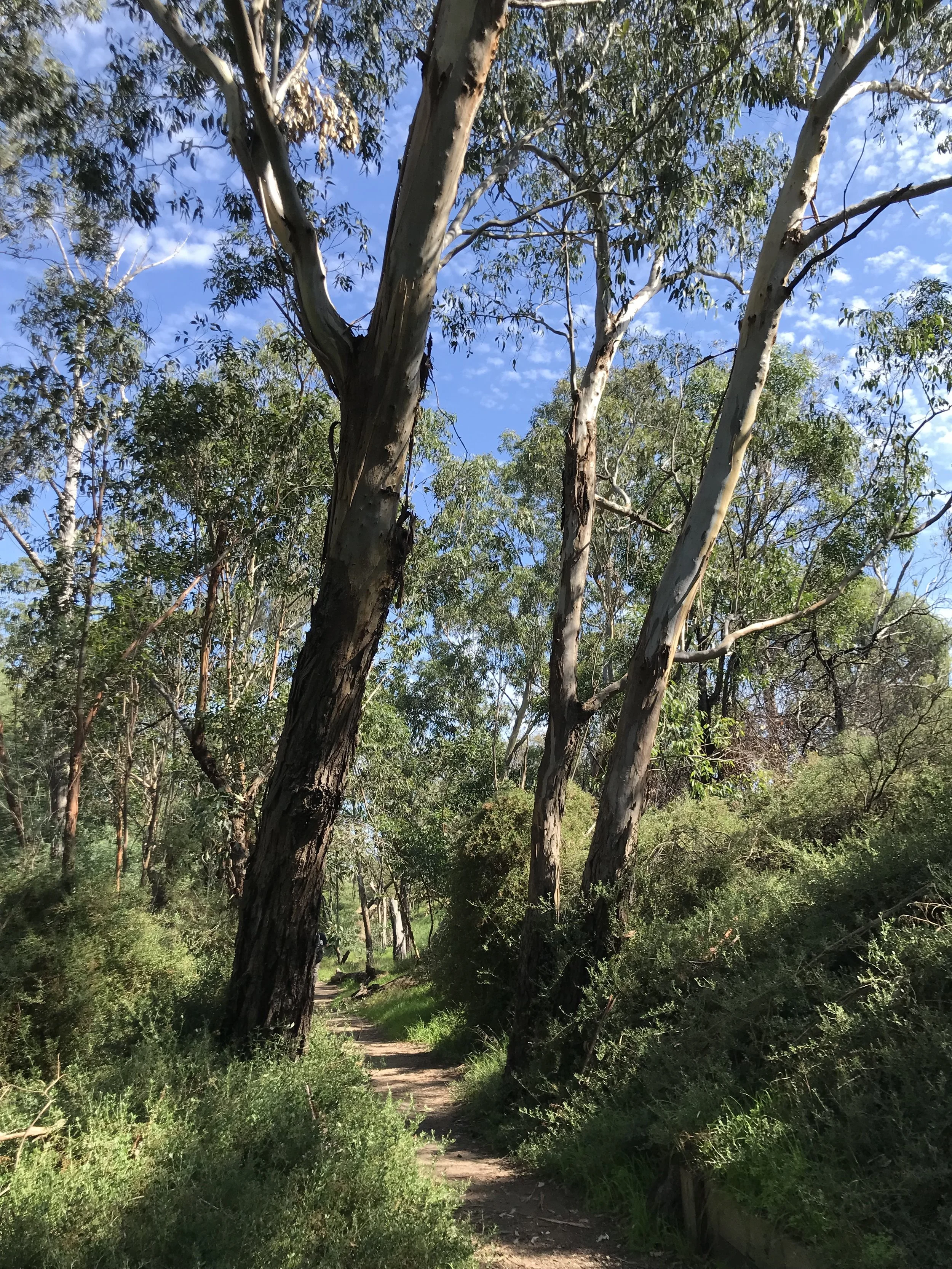 I visited Herring Island this morning. The 3.2 hectare blob of land in the middle of the Yarra started life as a blob of mud piled up when the course of the river was manipulated from its natural run to prevent nearby suburbs from flooding. Now, it’s an environmental and sculpture park, home to sprawling gums, spreading climbers, pepper trees and nine sculptures made of natural materials. It’s a most pleasant ramble. Stumbling upon the sculptures makes for a happy little treasure hunt. There’s even an art gallery on site. I caught the penultimate day of an exhibit of hundreds of works of art constricted to the dimensions of an A4 piece of paper.